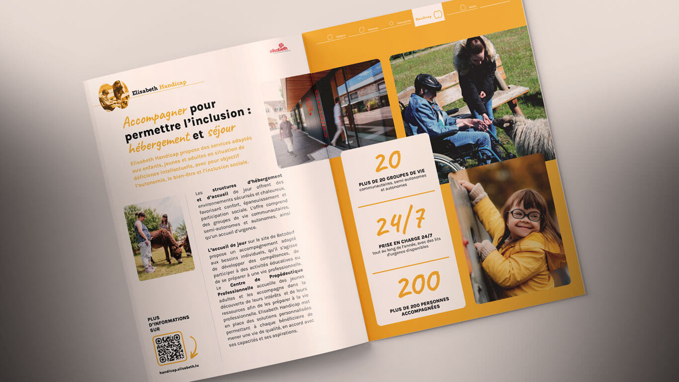 Suite à la conception de son rapport annuel, Elisabeth nous a fait de nouveau confiance pour concevoir sa brochure institutionnelle.