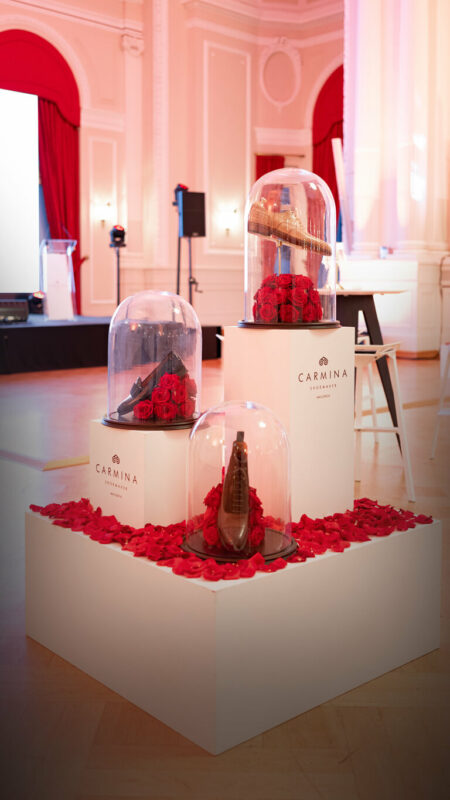 Noosphere, the brand’s communication agency in charge of the launch, entrusted us with the design and production of the event concept. Our mission was to enhance Carmina’s products through an elegant and refined staging, in harmony with the prestigious setting of Cercle Cité.