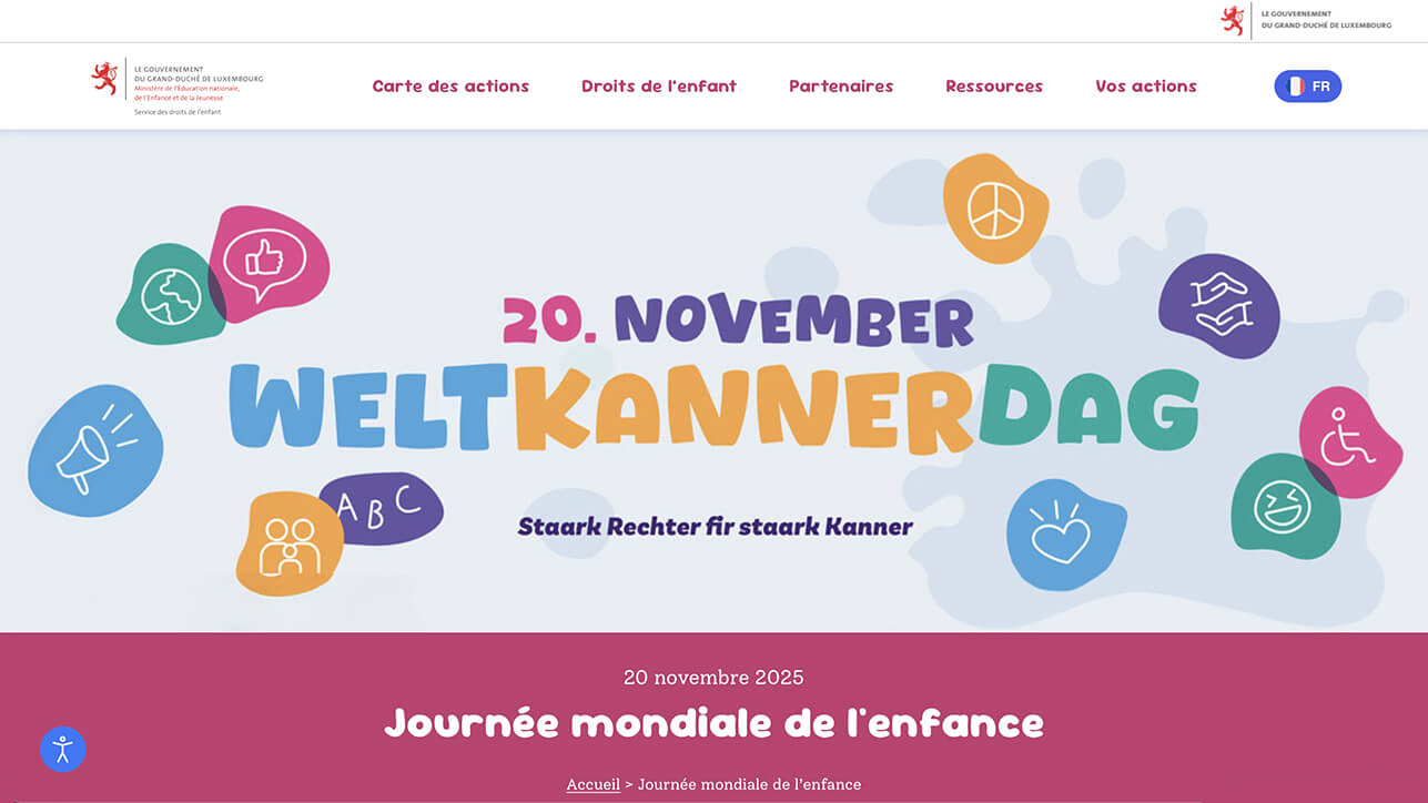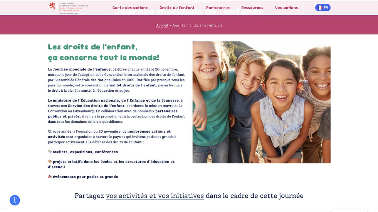 As part of Democracy Week and World Children’s Day, the Ministry of National Education, Children and Youth wanted a website to bring together all the events offered. The goal: to provide a clear, inclusive, and accessible platform capable of centralizing information, promoting initiatives, and simplifying registration for diverse audiences.